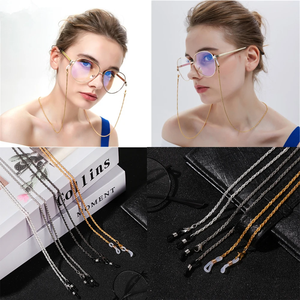 Цепочка для очков для чтения женская, металлическая Нескользящая шнуровка для очков, золотистая, серебристая, черная цепочка