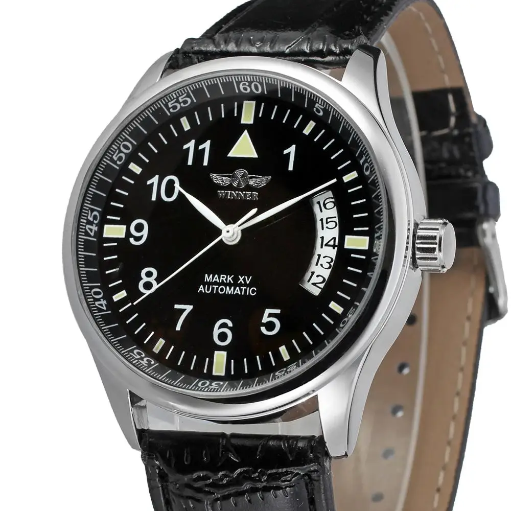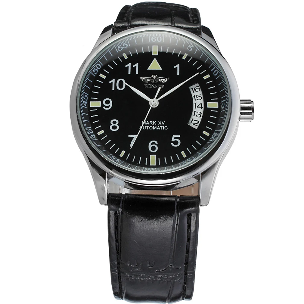 Часы WINNER, модные, цифровые, со сдержанным циферблатом, Роскошные мужские часы с черным ремешком, механические часы