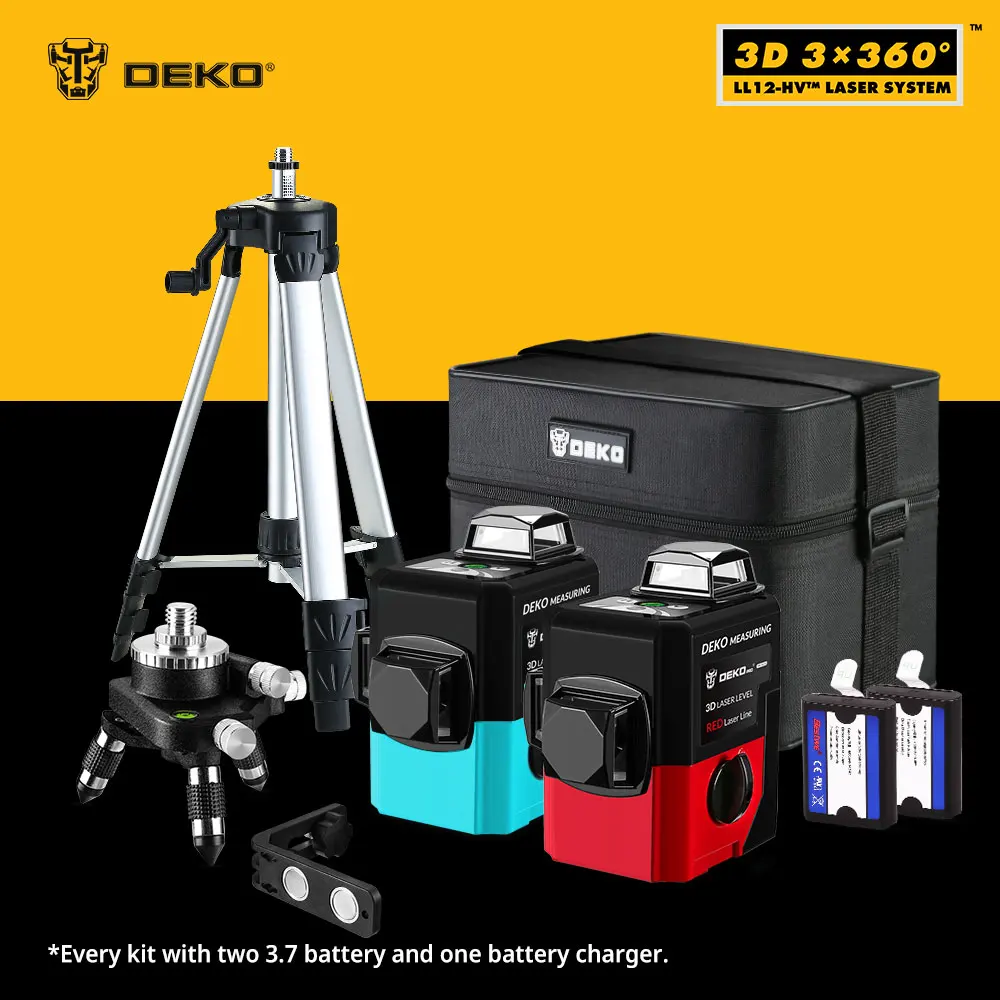 Лазерный уровень DEKO LL12-HVR SET2, самовыравнивающийся нивелир с 12 вертикальными и горизонтальными линиями красного цвета, может использоваться вне помещения