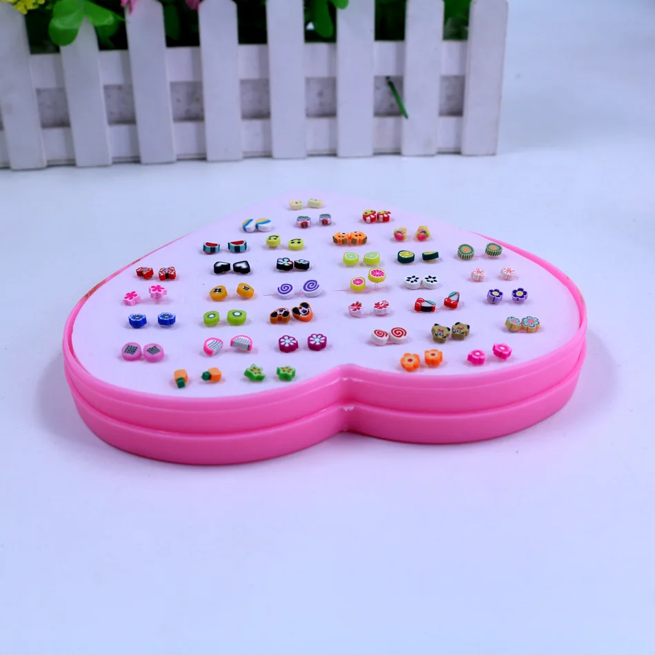 Набор серег-гвоздиков из полимерной глины для женщин и девочек, набор из 36 пар в ассортименте, 5 мм, с мультяшными фруктами и коробкой