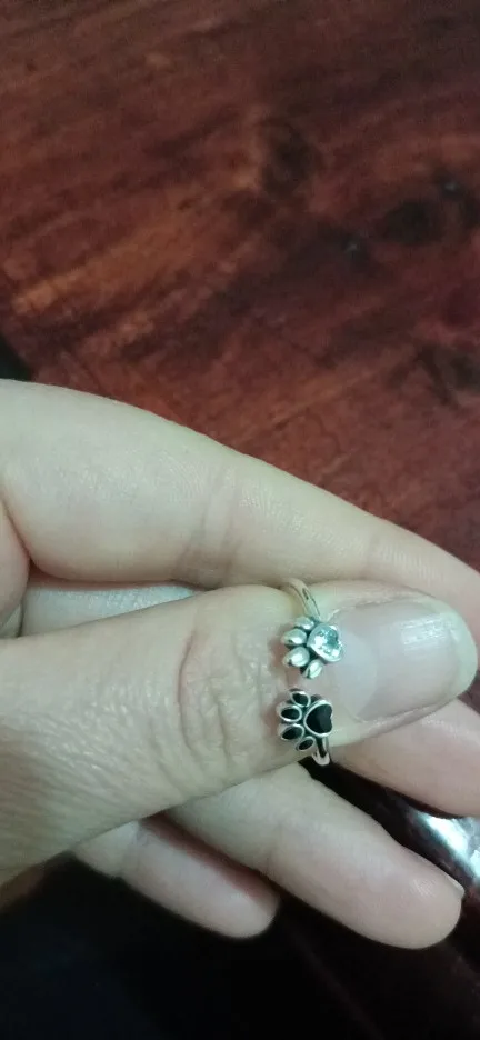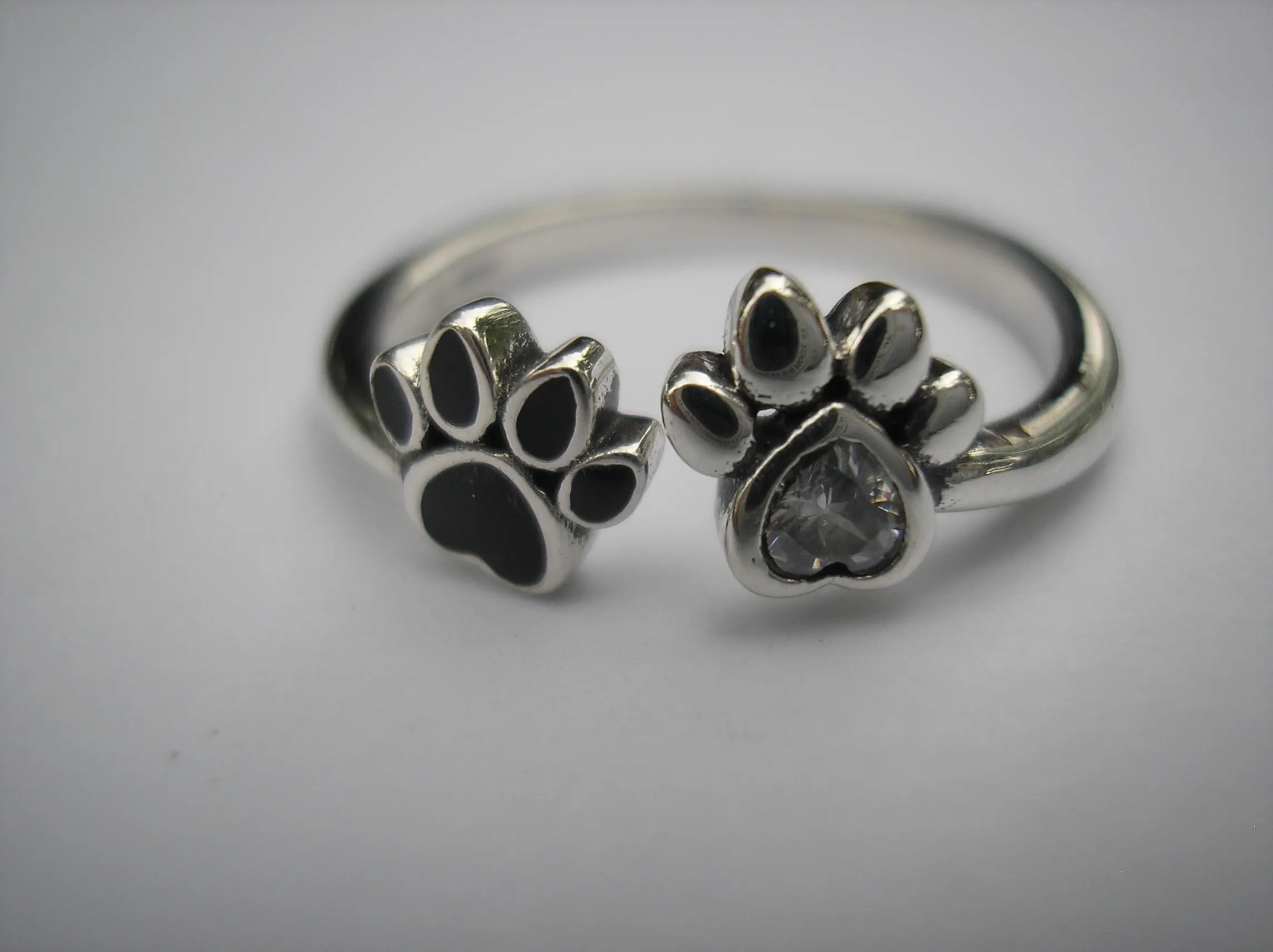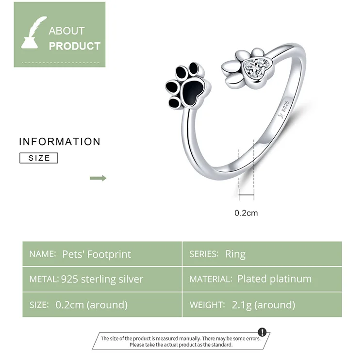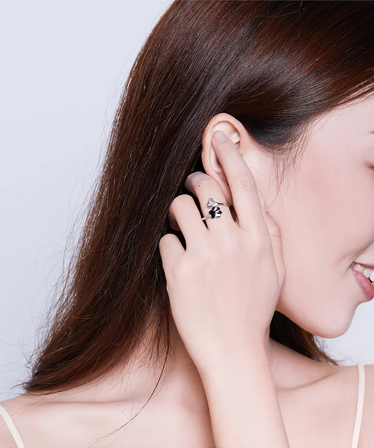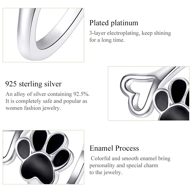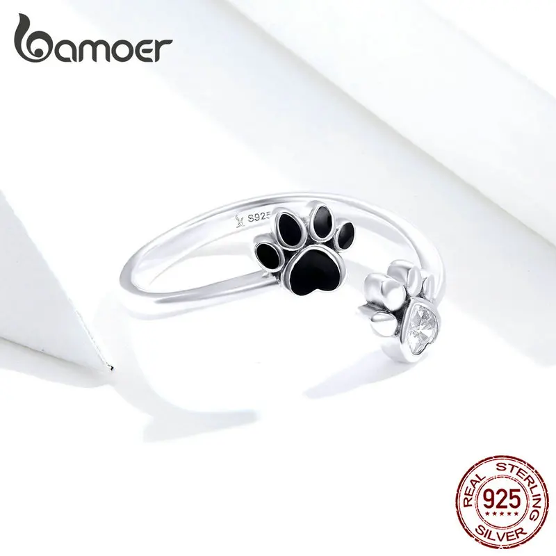 Женские регулируемые кольца bamoer из стерлингового серебра 925 пробы с черной эмалью в виде собачьей лапы, антиаллергенные ювелирные аксессуары SCR605