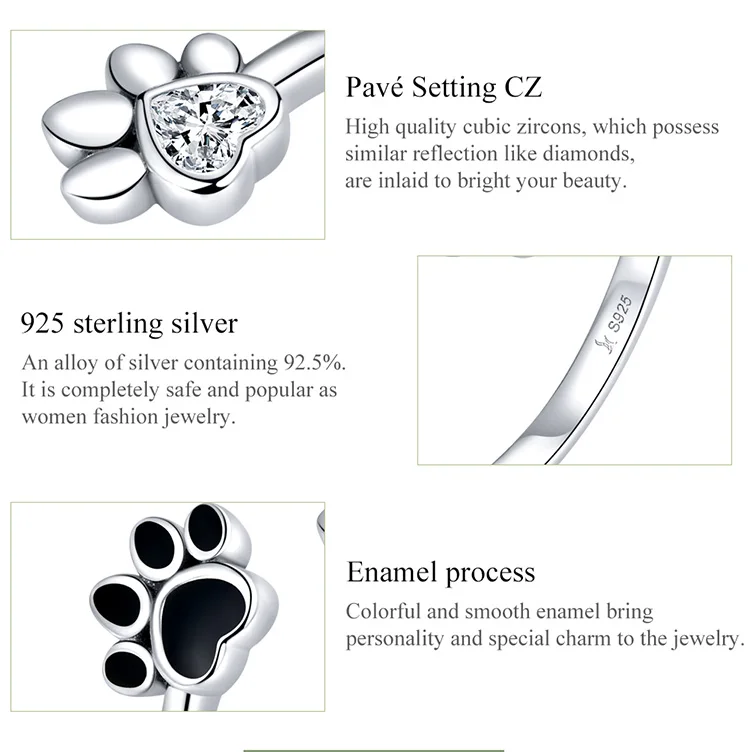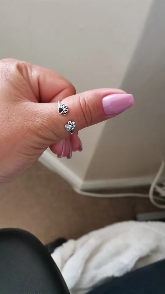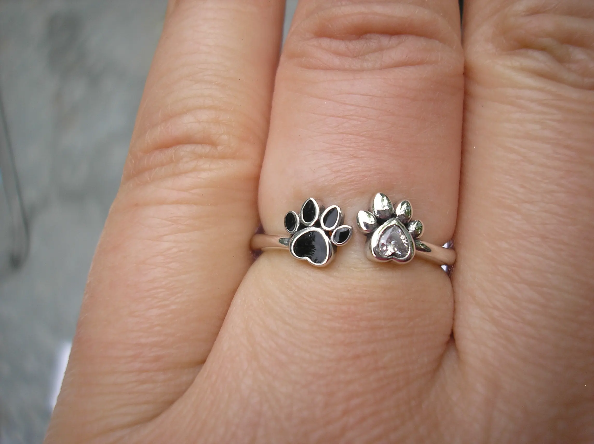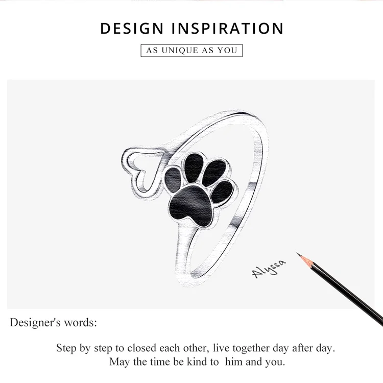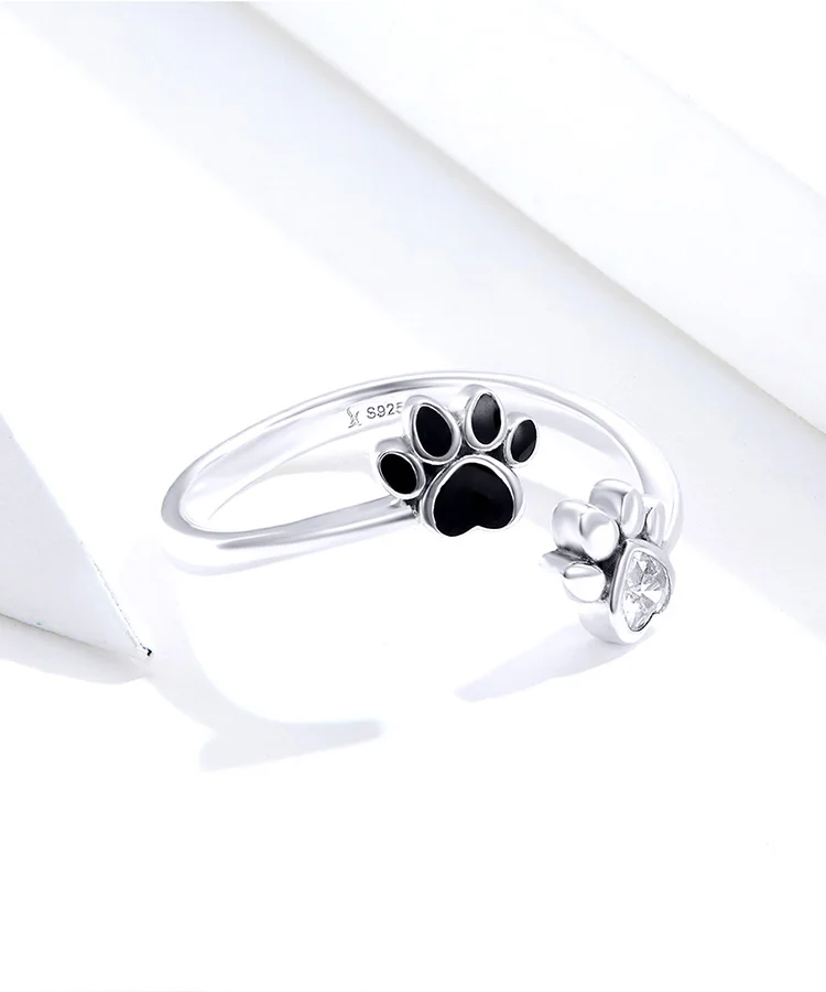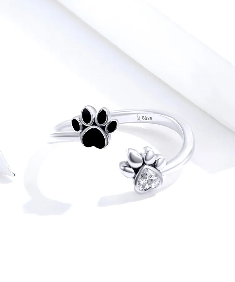 Женские регулируемые кольца bamoer из стерлингового серебра 925 пробы с черной эмалью в виде собачьей лапы, антиаллергенные ювелирные аксессуары SCR605