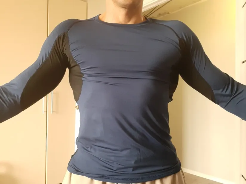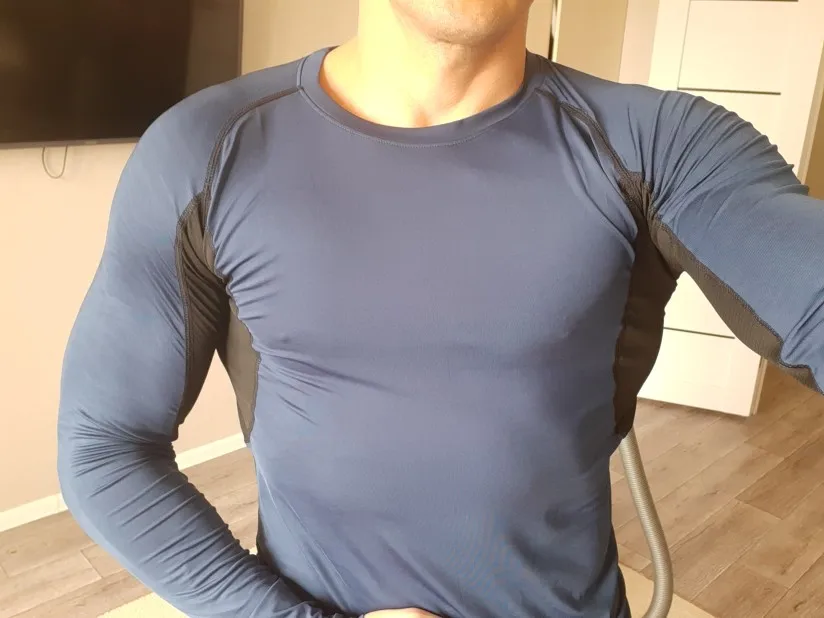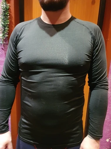 Очень хорошая, действительно компрессионная рубашка, маленькая, но это лишь иллюзия, она хорошо адаптируется к телу, обнаружила, что она немного Горячая, но без проблем.