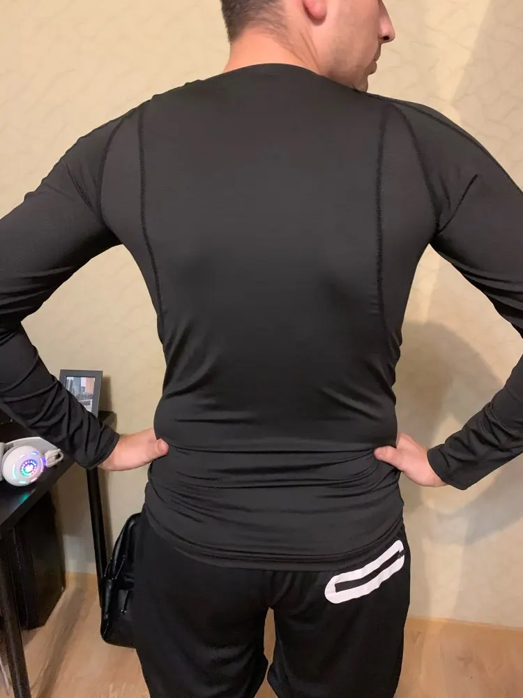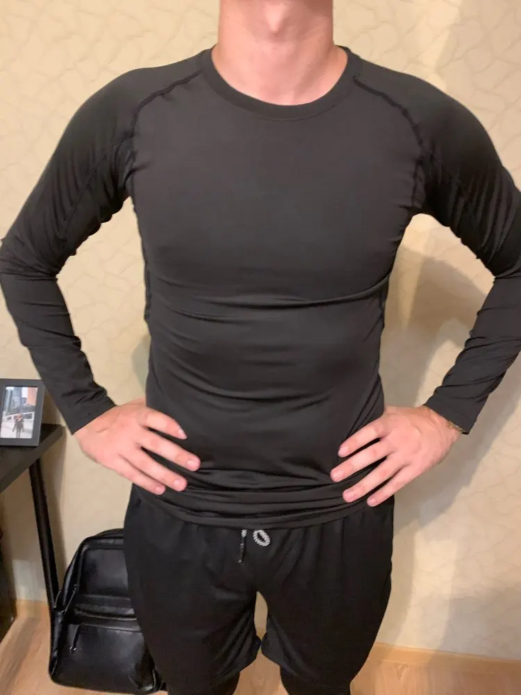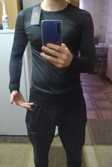 Заказывал М на 186см/72кг/ОГ 103, футболка села в обтяжку, но это не компрессия, она просто натянулась. Неприятно и некомфортно от этого натяжения, швы не тянутся. В области подмышек, на боках и рукавах тонкая ткань сеточкой, должно лучше дышать, для тёплой погоды в самый раз. Зимой бегать в такой даже под кофту может быть холодно. Рукава по длине нормально. Как отводит влагу пока сказать не могу, ещё не занимался в ней, позже дополню.