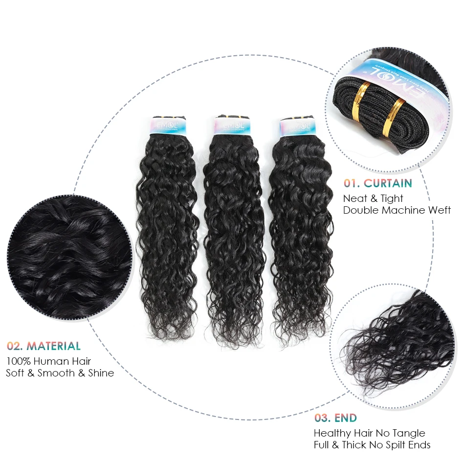 Бразильские волосы EMOL, волнистые, 100% натуральные человеческие волосы для наращивания, для женщин, натуральные, черные, стандарт s