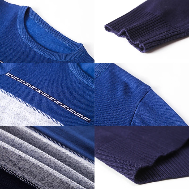 Мужской трикотажный свитер BROWON, облегающий свитер в полоску с круглым вырезом, зимний свитер для мужчин