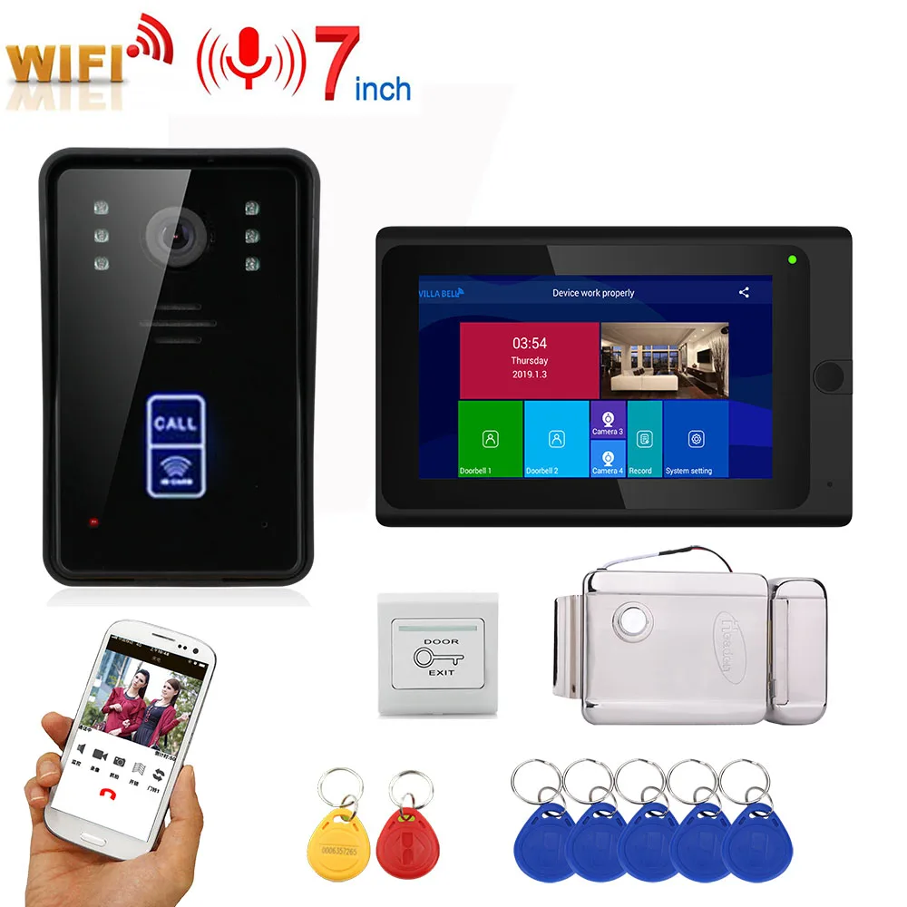 7 дюймов беспроводной Wifi RFID видео-телефон двери дверной звонок Домофон Система с домашней нержавеющей стали электронный дверной замок для видеодомофона домофон