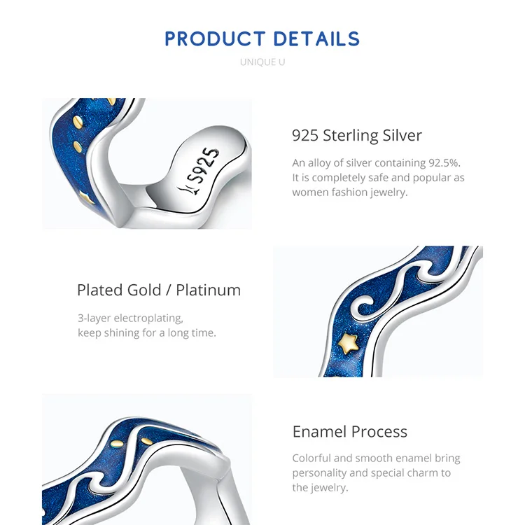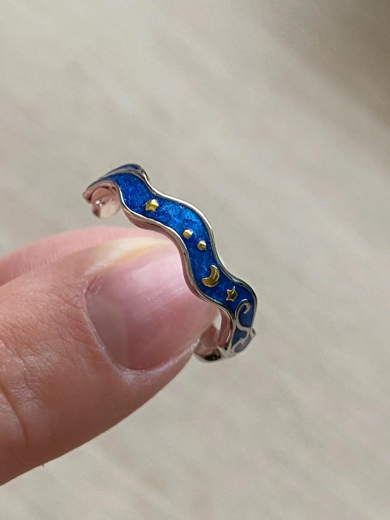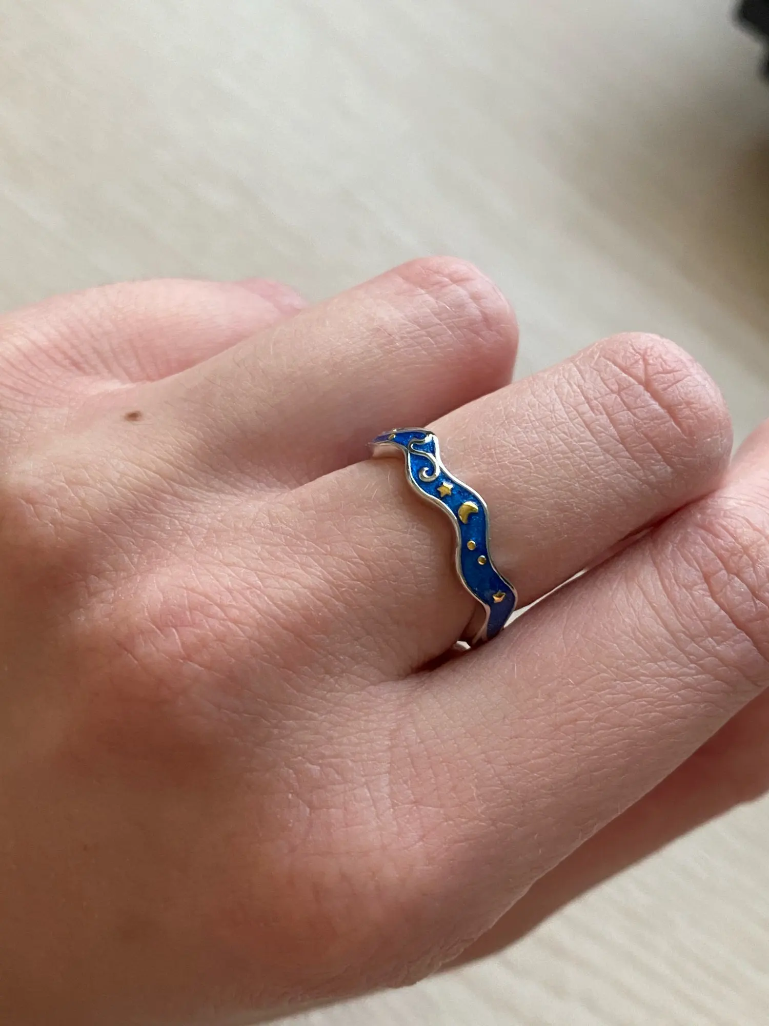 Кольцо для влюбленных из серебра 925 пробы, с голубым звездным небом Ван Гога