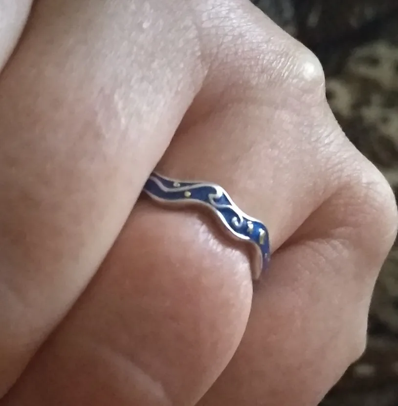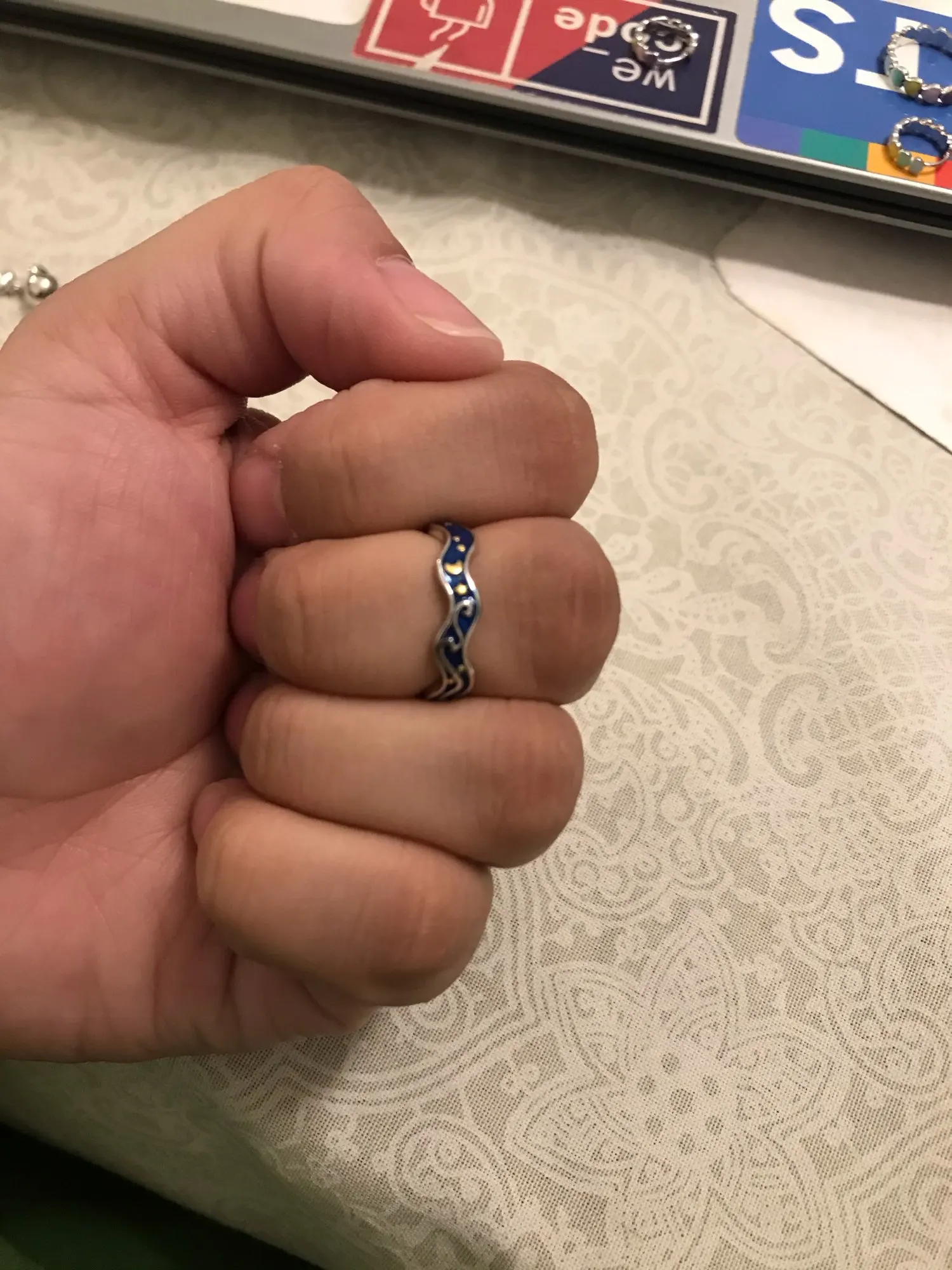 Мне нравится это кольцо, именно то, что я хотел, оно немного маленькое, и я могу только положить его на определенные пальцы, но оно выглядит так мило, такой уникальный, и у меня так много комплиментов на нем.