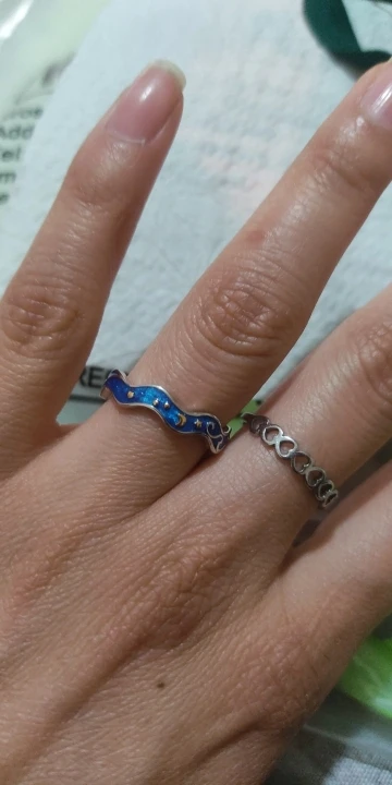 Très jolie bague avec un joli effet bleu et un motif très fin. Dommage cependant qu'elle soit de très petite taille mais si redimensionnable, on ne peut pas trop l'élargir quand même. je voulais en faire une bague de pouce, ce n'est donc pas possible. Livraison très rapide et avec une pochette épaisse pour le rangement.