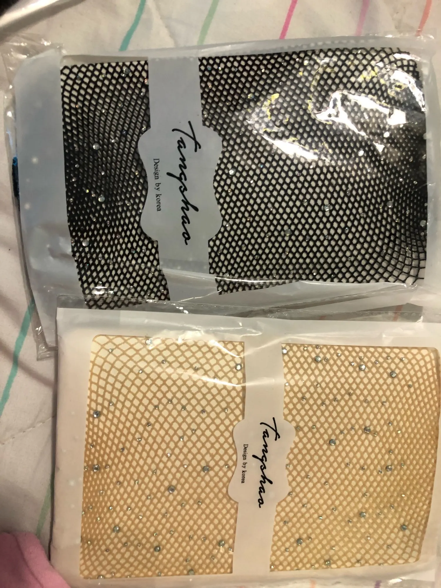 И так есть вопрос, почему некоторым пришли колготки с дырочкой где надо, а мне без?))) я заказала с учетом что она будет)) а так колготы как колготы, запах незначительный, стразы сыпятся!