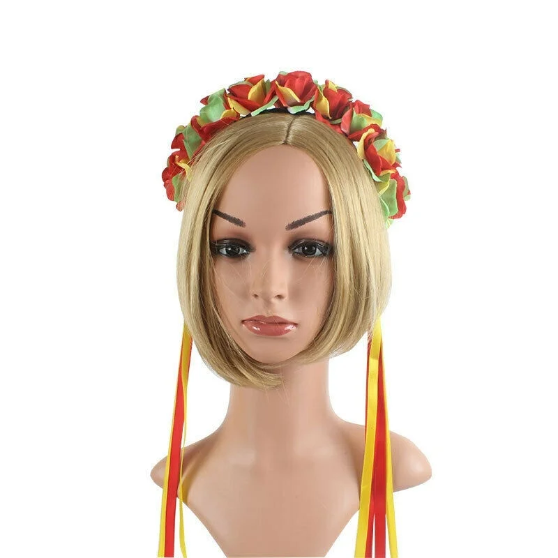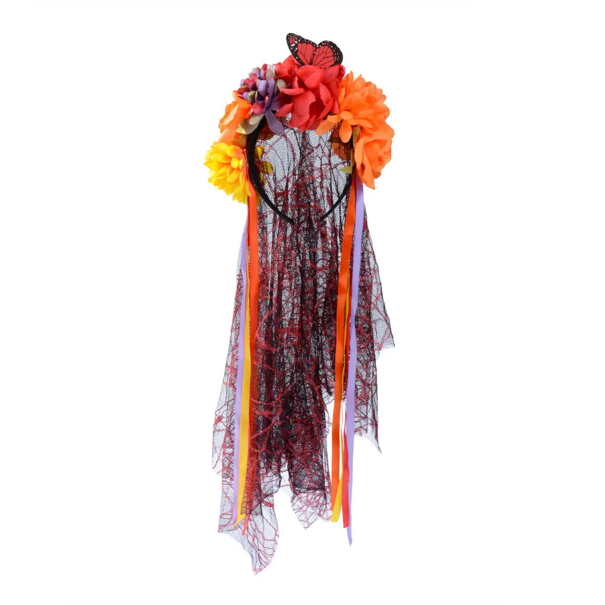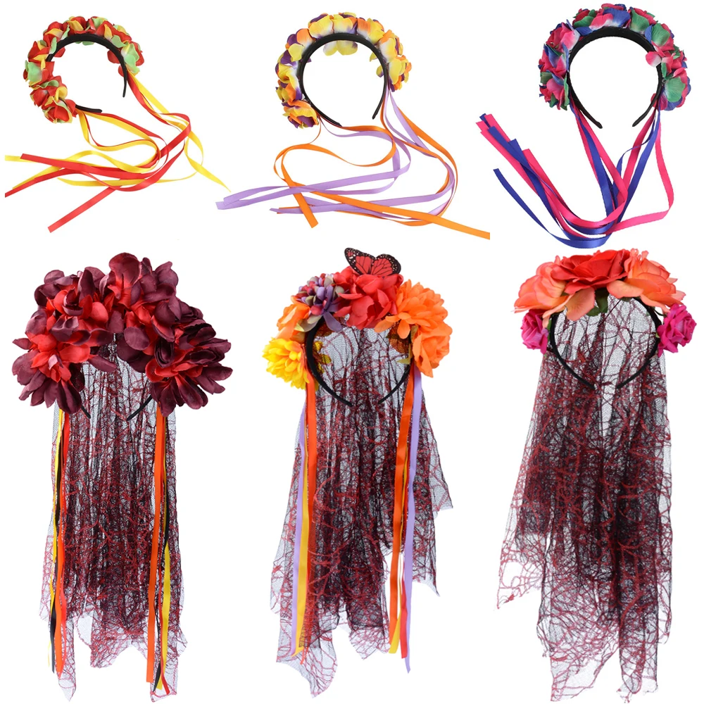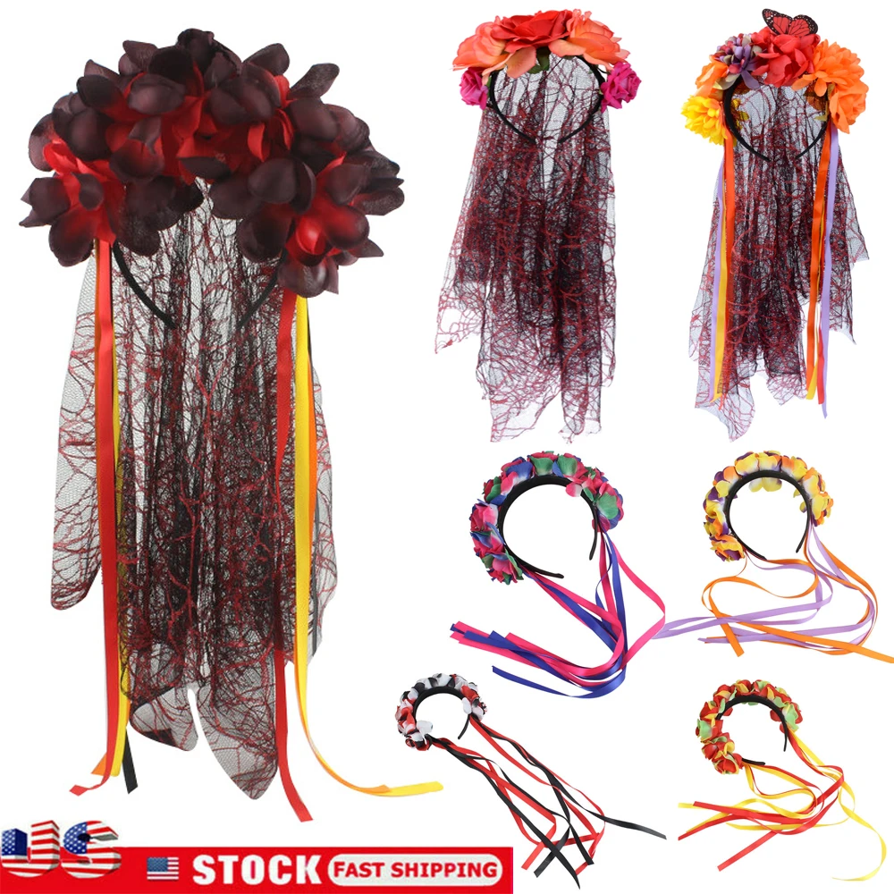 Женское платье с вуалью для девочки на тело розы для невесты с цветочным узором мексиканский День мертвых повязка на голову, повязка на голову, костюмы на Хэллоуин нарядное вечерние аксессуары для костюмов