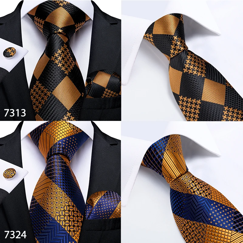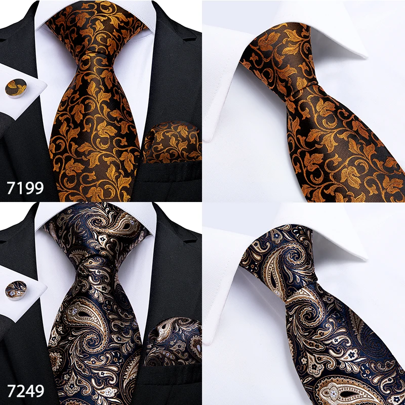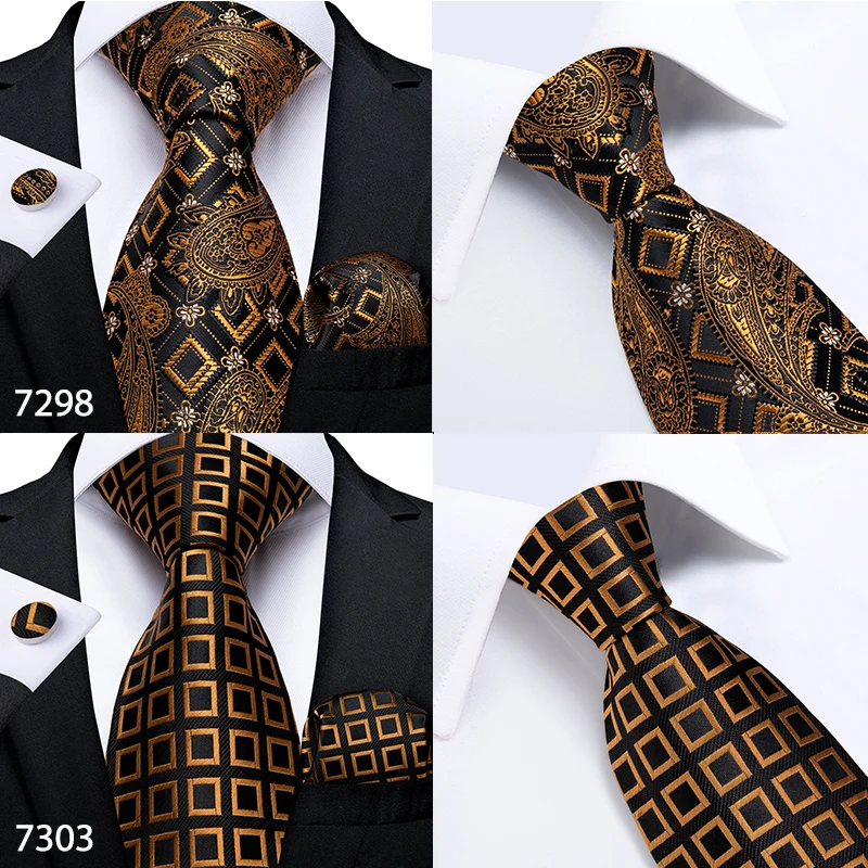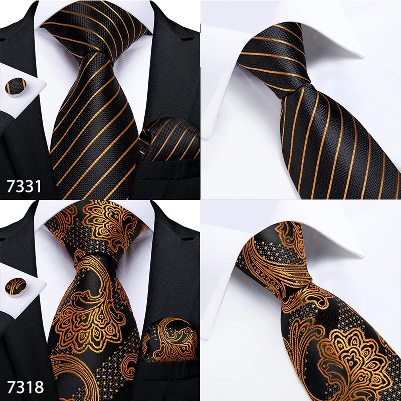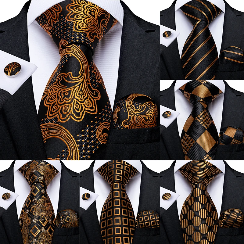 Подарок мужской галстук золотой черный полосатый Пейсли Шелковый Свадебный галстук для мужчин DiBanGu дизайн Hanky запонки качественный мужской галстук набор Прямая поставка