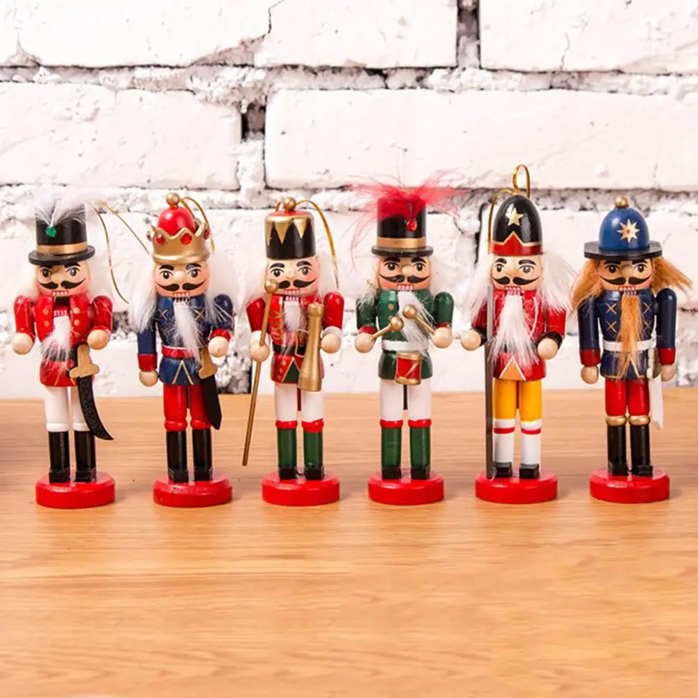 6 шт. деревянные куклы-гайкеры, куклы-марионетки, солдаты, миниатюрные фигурки, винтажная ручная работа, новогодние и Рождественские елочные украшения, домашний декор