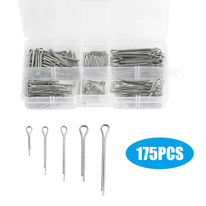 175 шт.компл. Ассорти серебряных шплинтовых фиксаторов, оцинкованный стальной Жесткий Чехол, шплинтовый штифт с коробкой