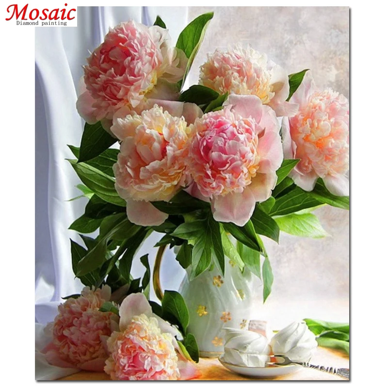 Алмазная живопись полный квадратный натюрморт Алмазная мозаика распродажа розовый цветок Стразы картины Алмазная вышивка крестиком