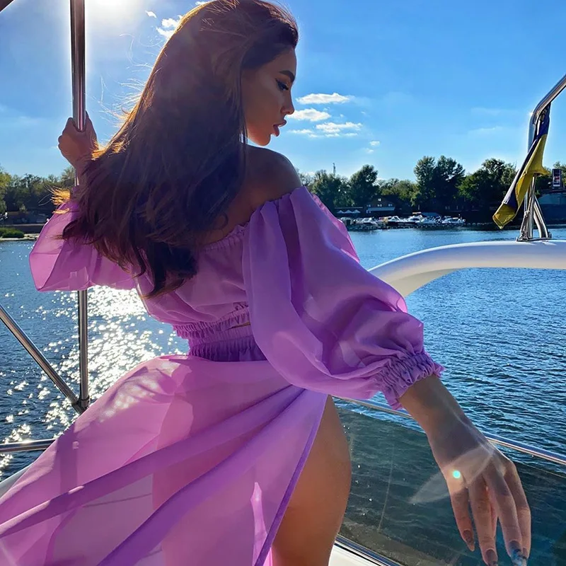 Женский комплект из двух предметов, короткий топ с открытыми плечами, длинным рукавом и юбка-накидка, для путешествий, пляжа, отпуска