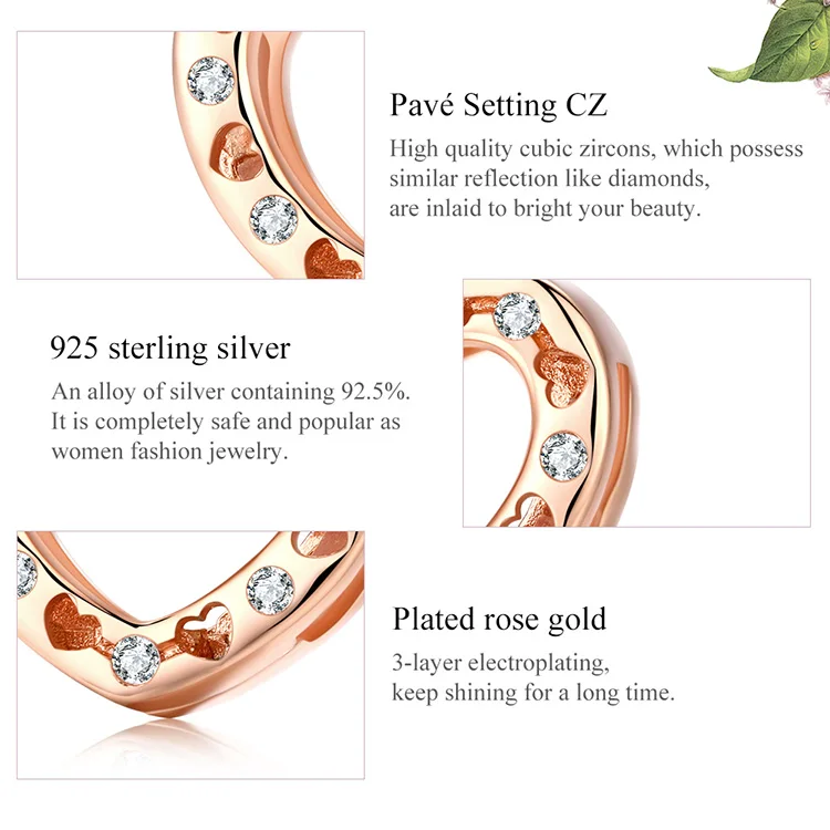 Женский браслет bamoer из стерлингового серебра 925 пробы с розовым...