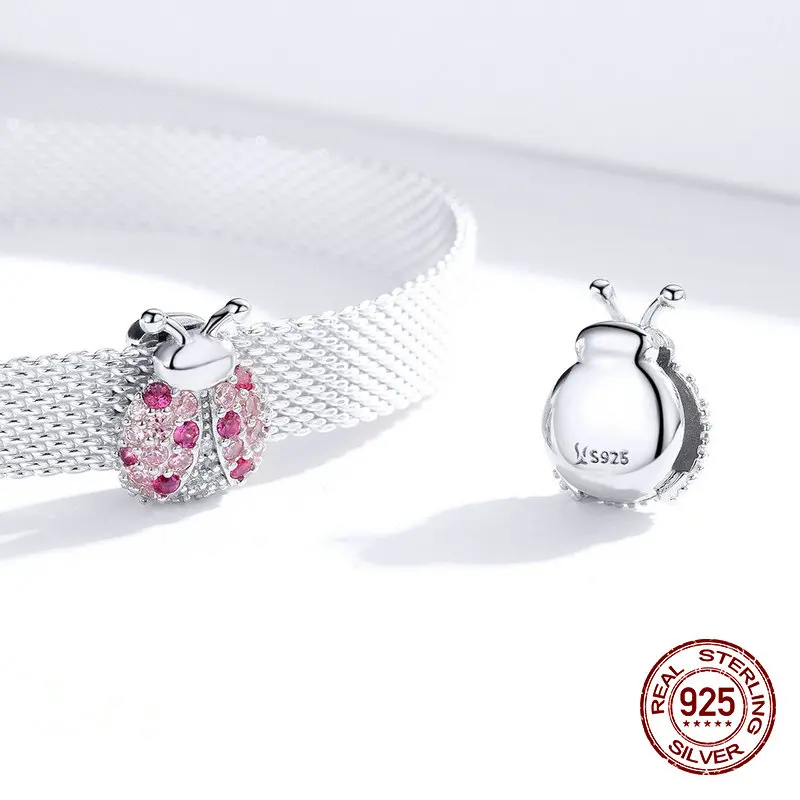 Бусины божья коровка из серебра 100% пробы с розовым цирконием для ...