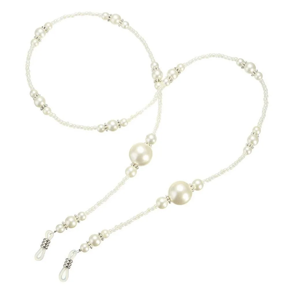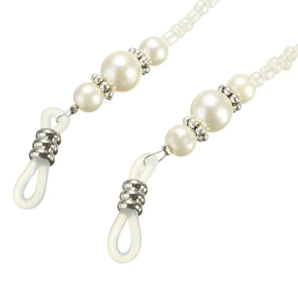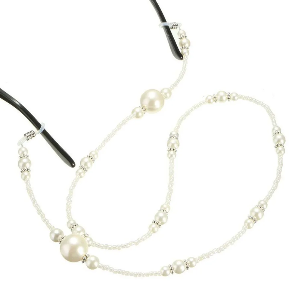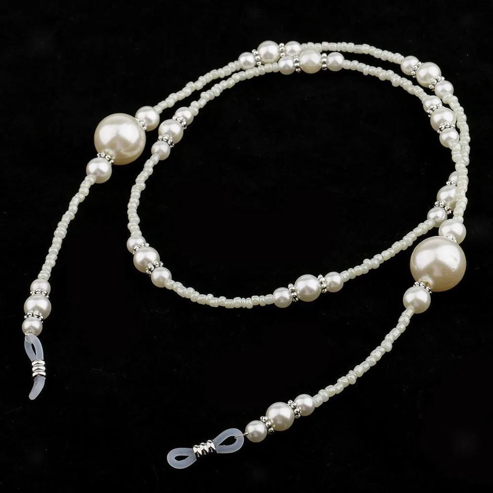 Цепочка для очков, акриловая, с жемчугом и серебряными бусинами