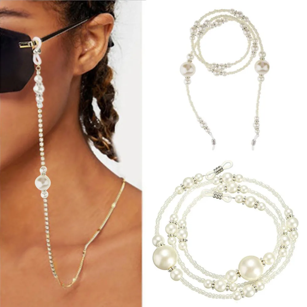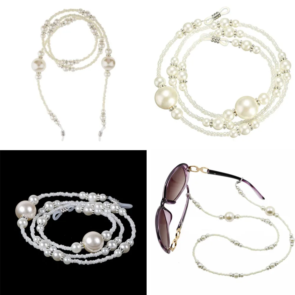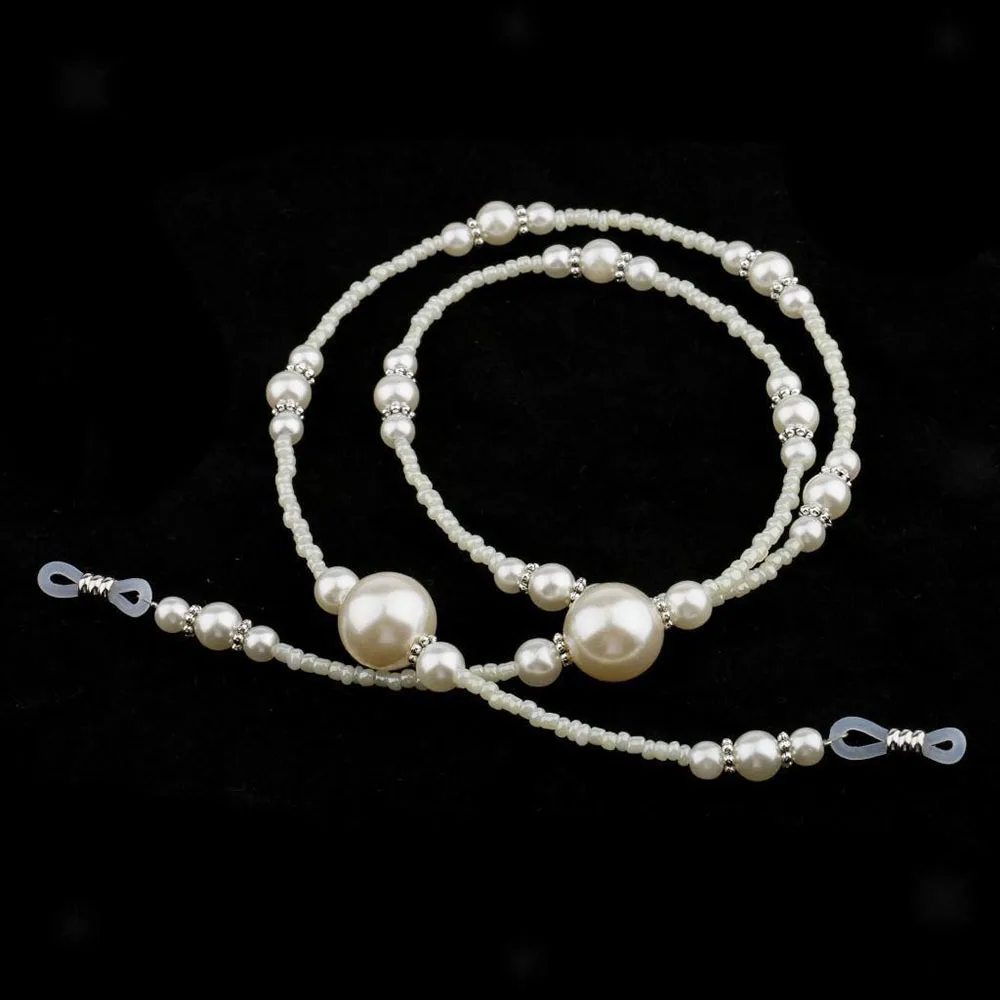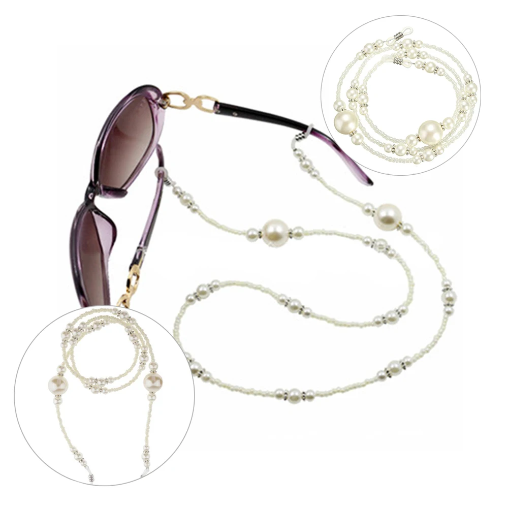 Цепочка для очков, акриловая, с жемчугом и серебряными бусинами