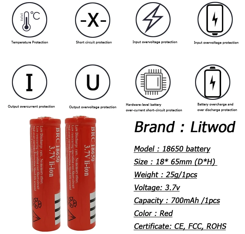 Источник питания: 2x18650 литий-ионная 3,7 V Батарея