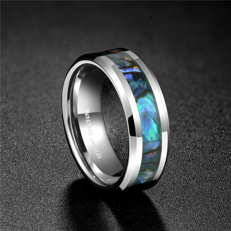 Tigrade Трендовое кольцо из карбида вольфрама 8 мм с инкрустированным абалонным корпусом, ювелирные изделия для свадебной вечеринки, кольца для пальцев, Прямая поставка