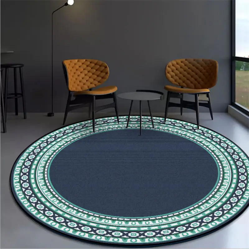 Коврики для детской комнаты, скандинавский зеленый край, темно-синий круглый ковер, коврики для дома, гостиной, ручная стирка, 100% полиэстер