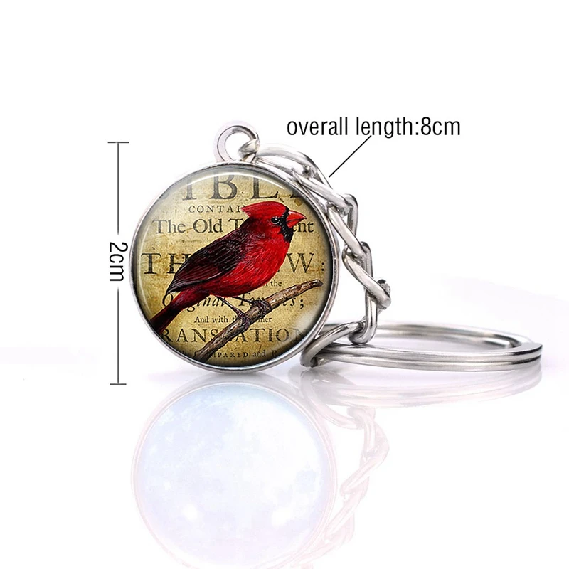 Брелок Cardinal Grosbeaks со стрекозой стеклянным шаром, красная птица, искусство, подвеска, двухсторонняя фотография