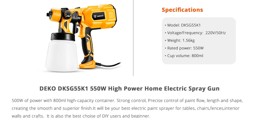 Пульверизатор DEKO DKSG55K1, 550 Вт, 220 В, с 3 насадками