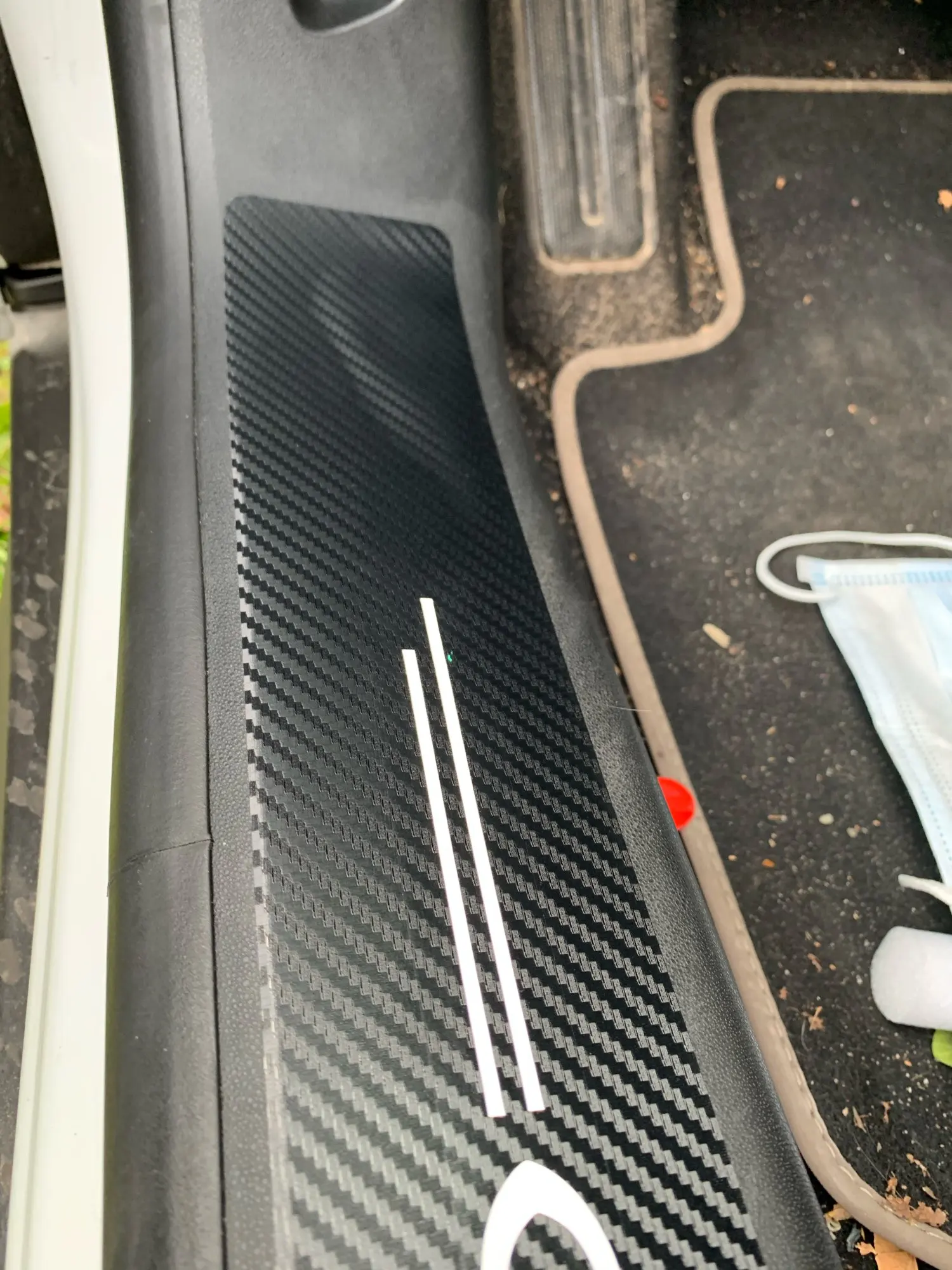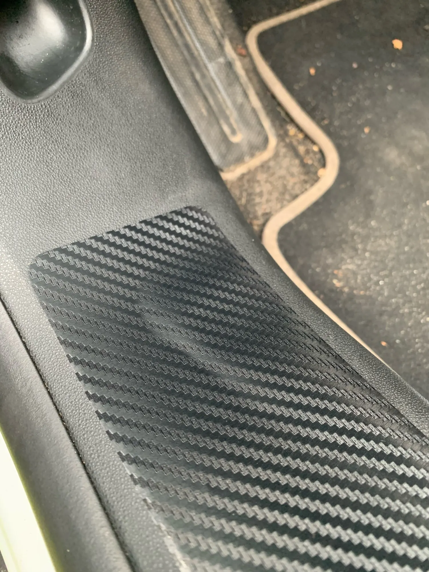 Это плёнка с надписью, тонкая, закос под карбон, но на пороги клеить не практично, ребёнок пару раз наступил и появились царапины