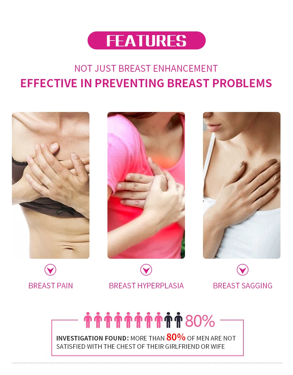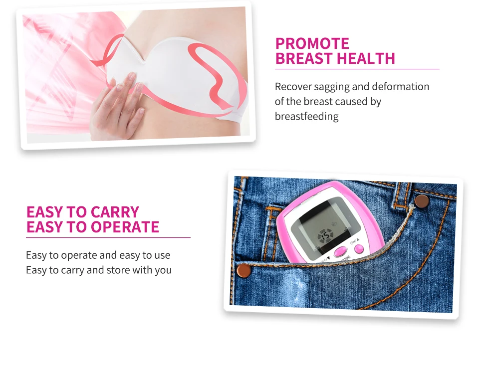 Особенности продукта: 1. Применяйте высокотехнологичные микробные электрические принципы к груди; 2. Стимулирует секрецию эстрогена и прогестерона, чтобы вызвать рост груди; 3. Увеличение тонкой груди; 4. Способствует развитию подростковой груди; 5. Восстановление провисания и деформации груди, вызванные грудным вскармливанием; 6. Прост в эксплуатации и прост в использовании; 7. Легко носить с собой и хранить вместе с вами.
