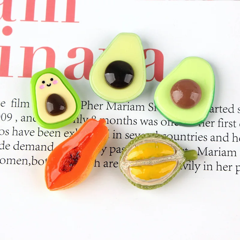 10 шт смолы милый авокадо Papaya Durian кабошон с плоской задней поверхностью моделирования фруктов DIY Скрапбукинг для телефона заколки аксессуары