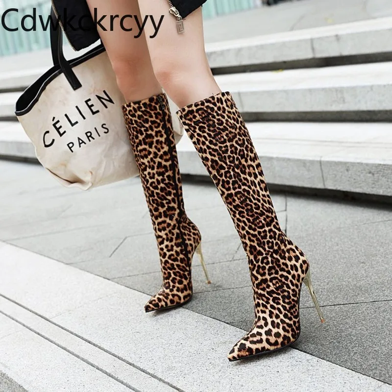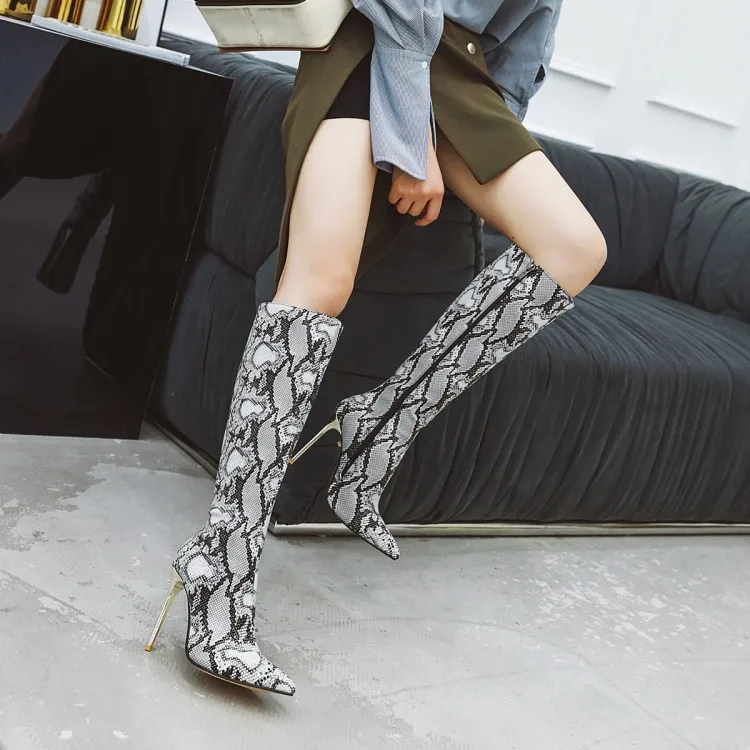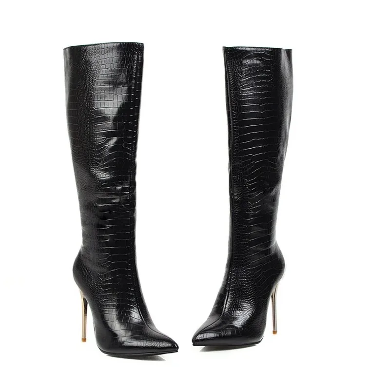 Сапоги женские зимние с острым носком, на тонком каблуке 10 см