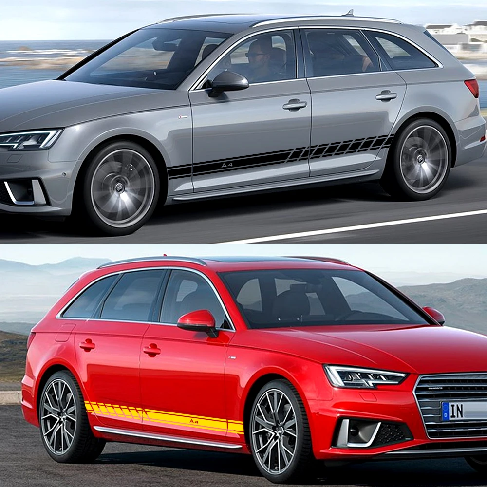 2PCS Sport Auto Door Side Skirt Stripes Decal Car Sticker For Audi ...