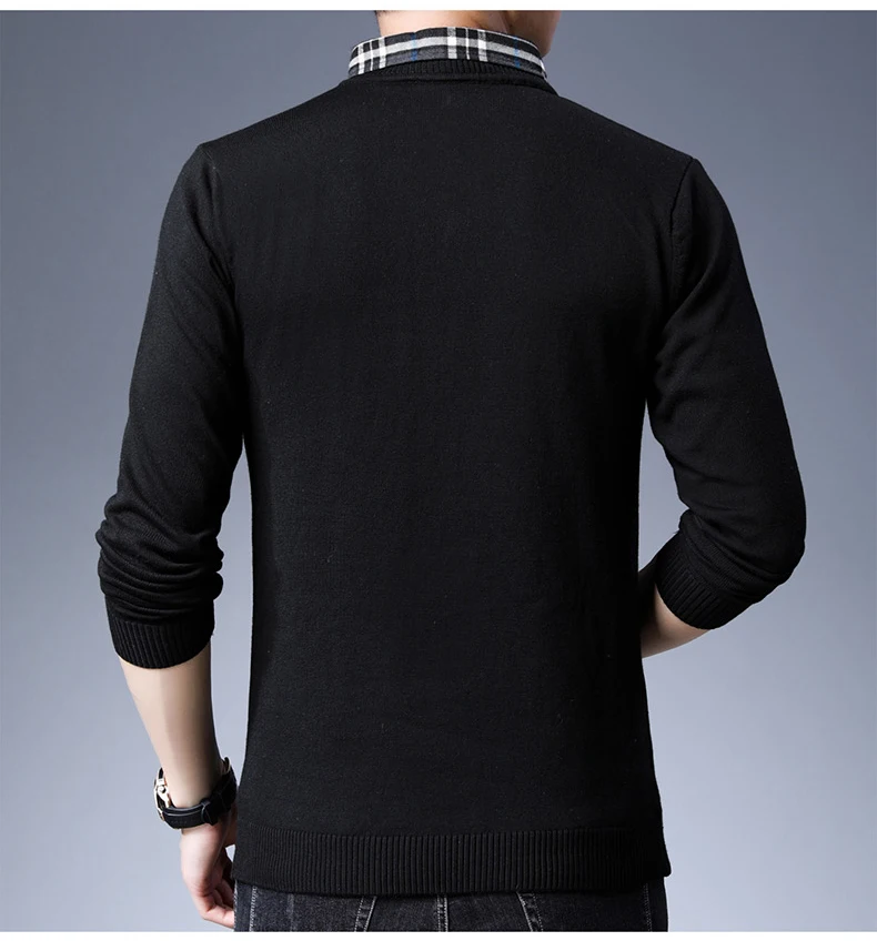 Мужской вязаный свитер BROWON, облегающий свитер из двух частей с отложным воротником, рубашка, одежда для размера плюс, осень, M-XXXL