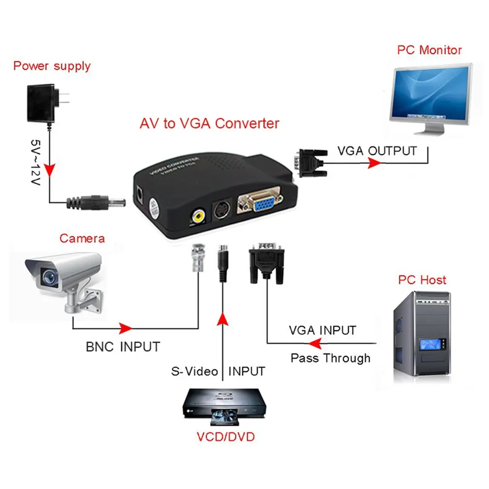 Композитный конвертер RCA AV S-Video в VGA, приставка CC TV DVR, ПК...