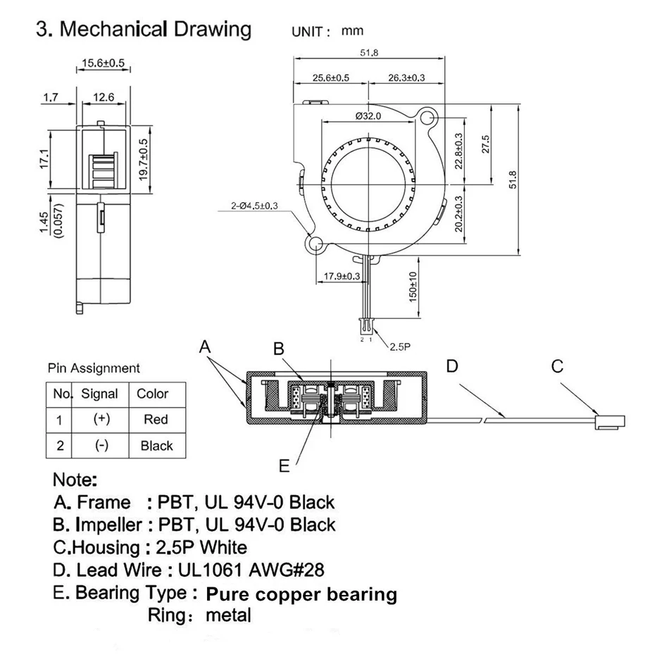 Размер вентилятора: 50x50x15 мм Напряжение/Источник питания: 12 В/24 В подшипник: масляный подшипник Длина провода: 15 см Номинальный ток: 0,15a ± 10% скорость: 3000 ± 10% для об/мин Уровень шума: 20дба ± 10% Вес нетто: 25 г/шт. 2-контактный Dupont