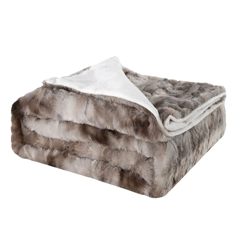 Very nice blanket! Very soft and fluffy No smell! Item was very late did not arrive on time, but nice gift when finally arrived