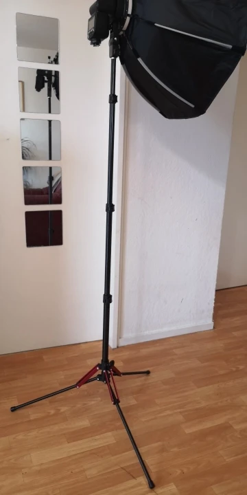 Заявленная высота в 192 см работает только если на стойку не собираетесь устанавливать ни чего тяжелее speedlight. При этой высоте стойка гнется даже под собственным весом. Оптимальная Устойчевая высота 154 см. (при небольшом отгибании ножек 170,но это уже рискованно) godox ad 600 держит уверенно только в минимальном положении. Если рассматривать как Низкую стойку - то вполне неплохо. Для средних высот придётся использовать те, которые хотел заменить Этой.