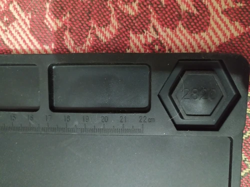 Коврик отличного качества, величиной с журнал, есть магнитик ПРОРЕЗИНЕННЫЙ, две шкалы линейки в см. и дюймах". Есть один не приятный момент, он будет собирать всю грязь со стола, пыль, крошки, но это просто придирка. Брал для работы по вейпингу, смена койлов,ваты и т.д. Товар дошёл за 12 дней из Китая в Челябинск. Запахов нет.