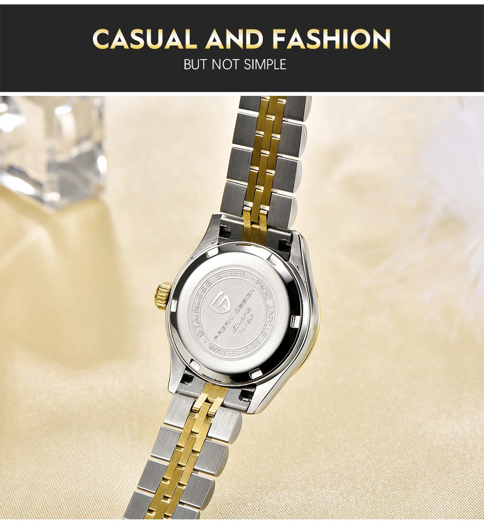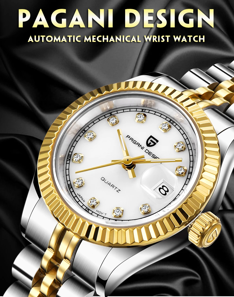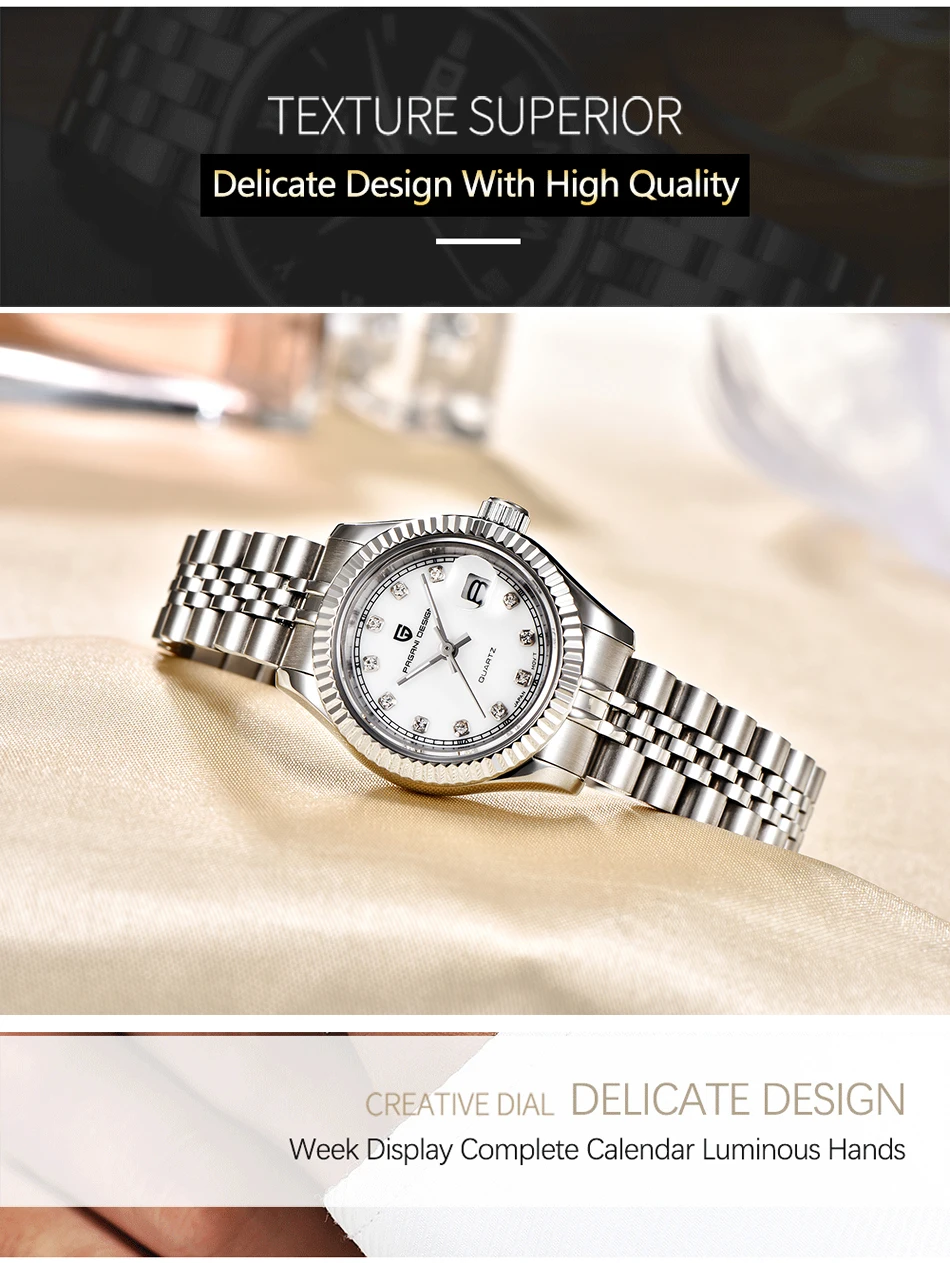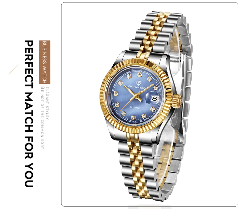 Часы женские кварцевые из нержавеющей стали с сапфировым стеклом