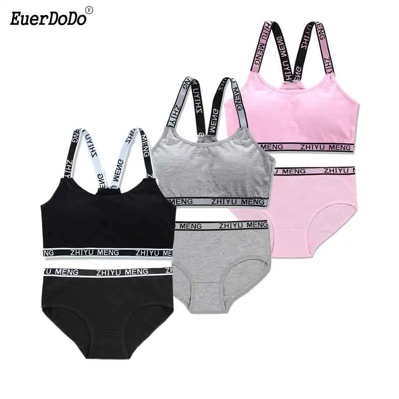 Молодые девушки трусики и бюстгальтер, комплект для девочек-подростков, Спортивное нижнее белье для детей, хлопковый спортивный бюстгальтер для девочек спортивный бюстгальтер для детей от 8 до 18 лет