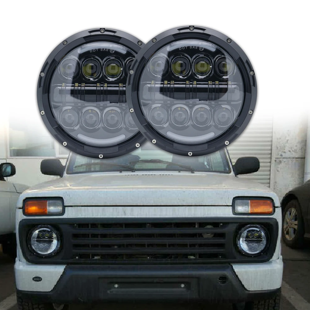 2 шт. светодиодные дневные ходовые огни для Lada Niva 4x4 1995, ходовой сигнал поворота, 7-дюйсветодиодный ные фары с лампой DRL для настройки автомобиля, задний фонарь