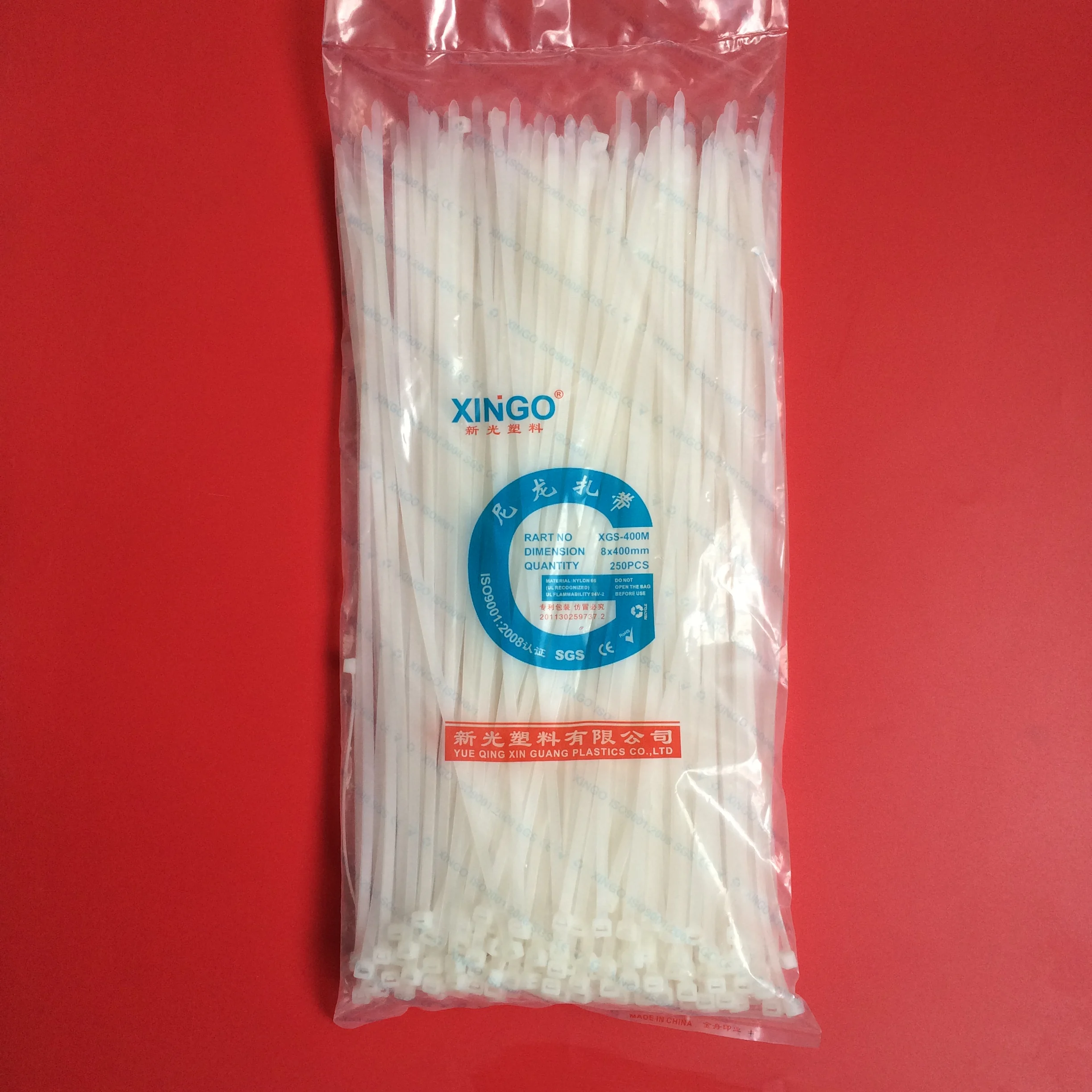 Самоблокирующиеся Нейлоновые кабельные стяжки Xingo 8x400 мм, 50 шт., пластиковые стяжки для кабеля, одобренные UL Rohs, петлевые стяжки в пучках, черные и белые