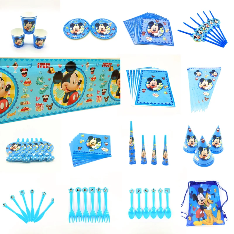 Дисней Микки Маус украшения для вечеринки на день рождения Детская тарелка чашка соломенная салфетка одноразовая посуда набор для вечеринки на Baby Shower