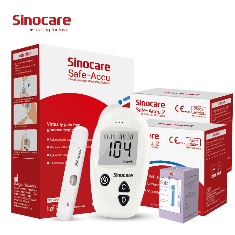 Измеритель уровня сахара в крови Sinocare Safe-Accu, комплект глюкометра, тест-полоски, игольчатые ланцеты, медицинская система контроля диабета