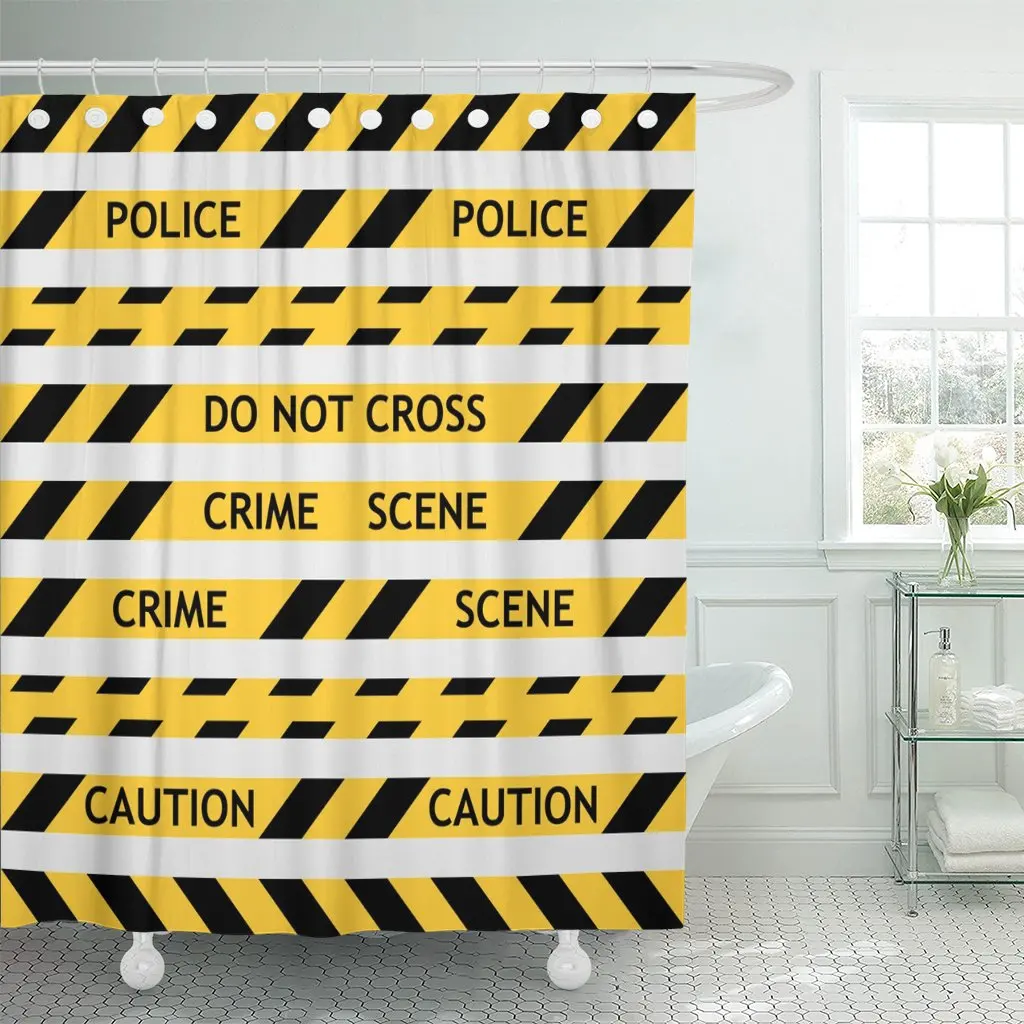 Желтый автомобиль полиции лента закрытого типа для криминалистике и с черными диагональными полосами; Ограждения преступления занавесок для душа