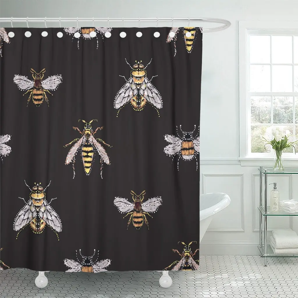 Стразы с желтыми мушками большой медовой пчелы осы маленькая забавная Хрустальная нашивка с насекомыми на черном Водонепроницаемая занавеска для душа из полиэстера