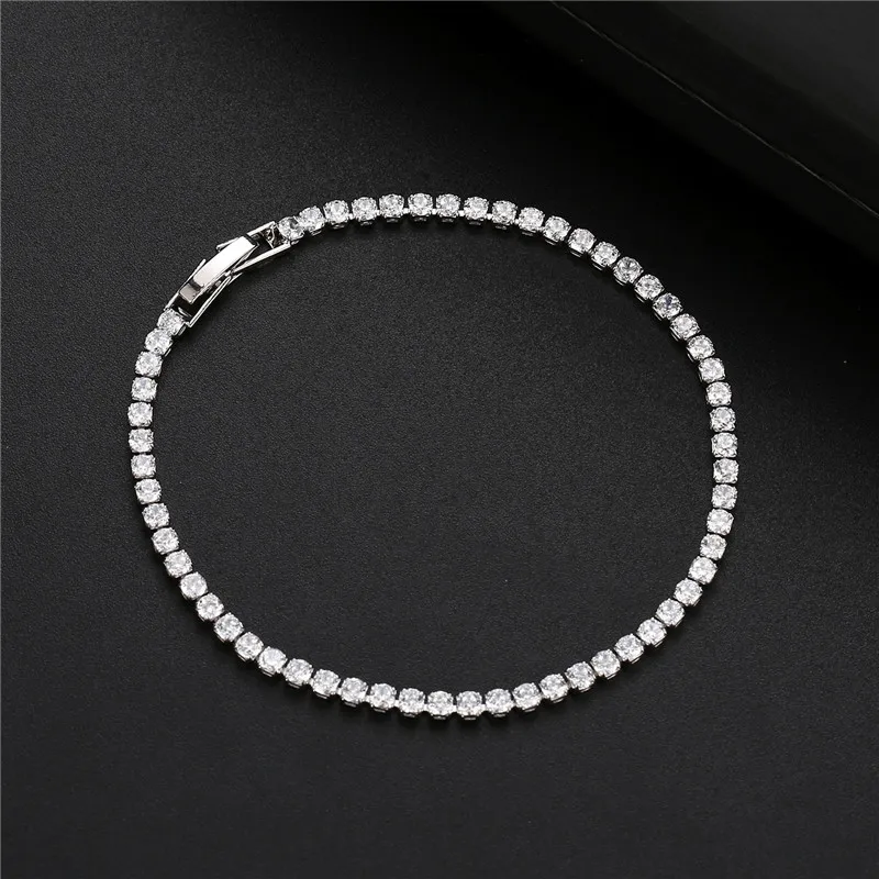 Роскошные 3 мм кубического циркония теннисные браслеты Iced Out цепь Кристалл Свадебный браслет для женщин мужчин золотой браслет ювелирные изделия бохо